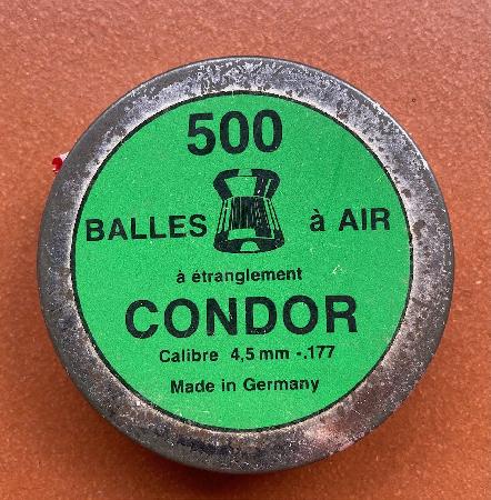 Balles à Air - Sammlermunition à étranglement Plombs CONDOR 4,5 mm pour pistolet ou fusil à Air comprimé. CONDOR, Cal. 4.5mm - .177; made in Germany 1 Blechdose à 500 Stück Privatverkauf: keine Garantie und keine Rücknahme. Twint auf Anfrage möglich. Zuzüglich Versandkosten: CHF 9.00