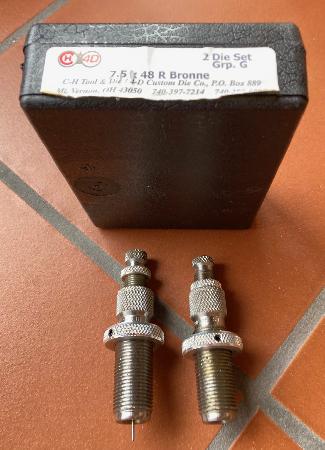 2-Die Set, Grp. G, 7,5x48R Bronne C-H Tool & Die/4-D Custom Die Co. (1x C H 7.5x48R Bronne ST; 1x C H 7.5x48R Bronne FL) use shell holder 8.15x46R Privatverkauf: keine Garantie und keine Rücknahme. Twint auf Anfrage möglich. Zuzüglich Versandkosten: CHF 9.00