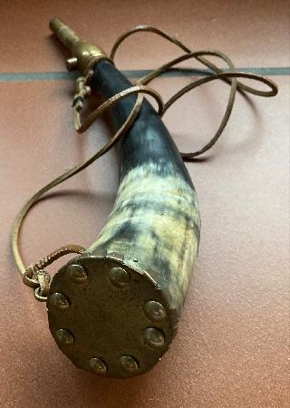 Antikes Pulverhorn Altes Pulverhorn mit Ausgussschnabel aus Messing für das Wiederladen mit Schwarzpulver. Totale Länge: ca. 30cm Durchmesser: ca. 6.5cm Sehr guter Zustand. Privatverkauf: keine Garantie und keine Rücknahme. Twint auf Anfrage möglich. Zuzüglich Versandkosten: CHF 9.00