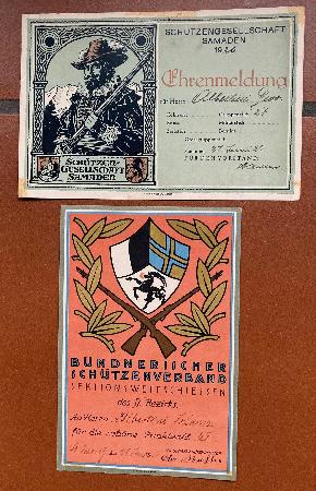Kanton Graubünden (2 Sammlerkarten) Originale Karten aus dem Kanton GR. Seltene Sammlerstücke mit historischem Wert! Die Karten weisen leichte Gebrauchsspuren auf. Ideal für Sammler von Militaria, Schützenvereine oder Geschichtsinteressierte. - Schützengeselllschaft Samaden 1926, Ehrenmeldung - Bündnerischer Schützenverband, Sektionswettschiessen des II. Bezirks, 1930 Privatverkauf: keine Garantie und keine Rücknahme. Twint auf Anfrage möglich. Zuzüglich Versandkosten: CHF 2.50