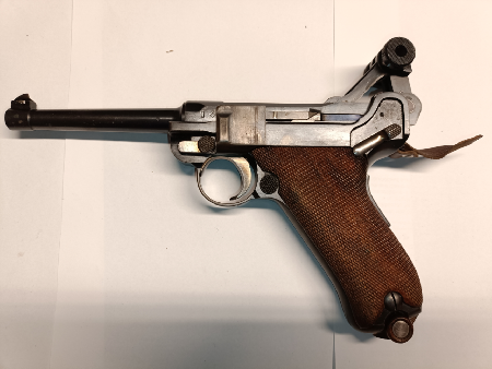 Parabellum 00 mit Strahlenkreuz, ein Magazin und Holster. Original Visierung Zustand gebraucht aber OK Nummer 7854. Per Post CHF 15.- oder Abholung