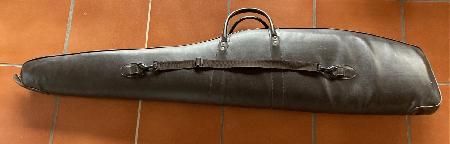 Gewehrfutteral für Langwaffen Sehr stabiles, extra langes Gewehrfutteral für Langwaffen aus Similileder für 1 Waffe. Farbe dunkelbraun, innen mit dunkelgrauem Höcker-Schaumstoff gepolstert. Doppelter Tragegriff, verstellbarer Schulterriemen und Aufhängeschlaufe am oberen Ende des Futterals. Der Reissverschluss kann über die ganze Länge des Futterals auf beide Seiten geöffnet werden. Es ist möglich, am Reissverschluss ein kleines Schloss zur Sicherung anzubringen. Gesamtlänge: 148cm; Breite (unten): 23cm; Breite (oben): 12cm; grösste Breite: 30cm Zustand: gebraucht (siehe Bild). Bild ist Teil der Beschreibung. Privatverkauf: keine Garantie und keine Rücknahme. Twint auf Anfrage möglich. Abholung empfohlen oder zuzügliche Versandkosten (Sperrgut! CHF 31.50)