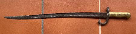 Antikes, originales franz. Degen-Bajonett Französisches Degen-Bajonett passend zum Militärgewehr Chassepot, Modell 1866 French M1866 Chassepot Bayonet, produced at the French state arms plants Baïonnette française Chassepot vendu dans l'état (voir photos) Hersteller: Mre de Chatellerault, Mutzig, St. Etienne, Tulle (Name leider nicht mehr lesbar) Gravur auf Griff (schwierig lesbar): ev. „S 0532“ Klingenlänge: ca. 570 mm Gesamtlänge: ca. 690 mm (27 inches) Durchmesser Mündungsring/muzzle ring diameter: 17.5mm Privatverkauf: keine Garantie und keine Rücknahme. Twint auf Anfrage möglich. Zusätzliche Versandkosten: CHF 31.00 (Sperrgut-aufgrund der Länge des Degens); Abholung empfohlen.