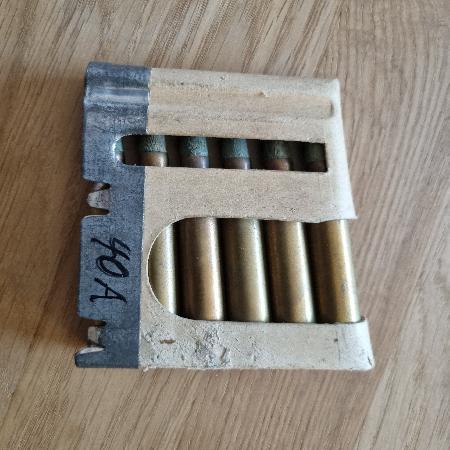 Lader 6 Blinde Patronen (Holzspitze) GP11 (7,5mm) Jg. 1940A / OVP - gemäss Bild - Privatverkauf: keine Garantie und keine Rücknahme. Twint auf Anfrage möglich. Zuzüglich Versandkosten: CHF 9.00