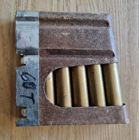 1 Originallader CH-Armee (6 Schuss) Gewehrpatrone Kal. 7.5mm GP11 / Jg. 1960 Thun / OVP - gemäss Bild - Privatverkauf: keine Garantie und keine Rücknahme. Twint auf Anfrage möglich. Zuzüglich Versandkosten: CHF 5.00