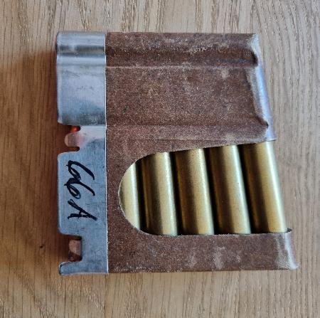 1 Originallader CH-Armee (6 Schuss) Gewehrpatrone Kal. 7.5mm GP11 / Jg. 1966 Altdorf / OVP - gemäss Bild - Privatverkauf: keine Garantie und keine Rücknahme. Twint auf Anfrage möglich. Zuzüglich Versandkosten: CHF 5.00