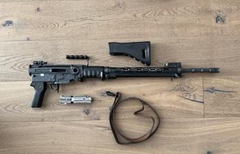 Stgw 57 für Ersatzteile wie auf dem Foto. Das Gewehr ist grundsätzlich funktionsfähig, es fehlen nur ein paar Teile. Ladegriff, Feder+Schraube vom Ladezeiger,1 Widerlager mit Sicherungsring, Kolbenhals mit Feder, Magazin.