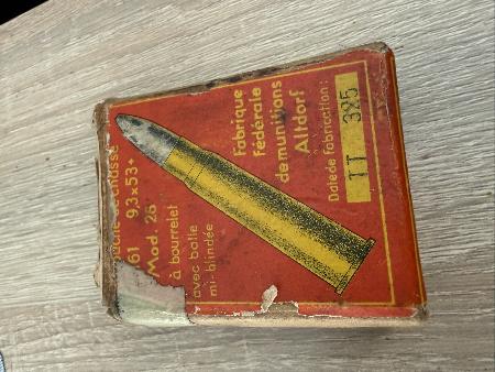 Seltene jagd und Sammler Munition 9,3x53r 10,Stück Packung gibt auch Wunsch mehrere Packung. Verkaufe per CH Gesetz Für Fragen und Mehrere Bilder am tel.076,420,36,70
